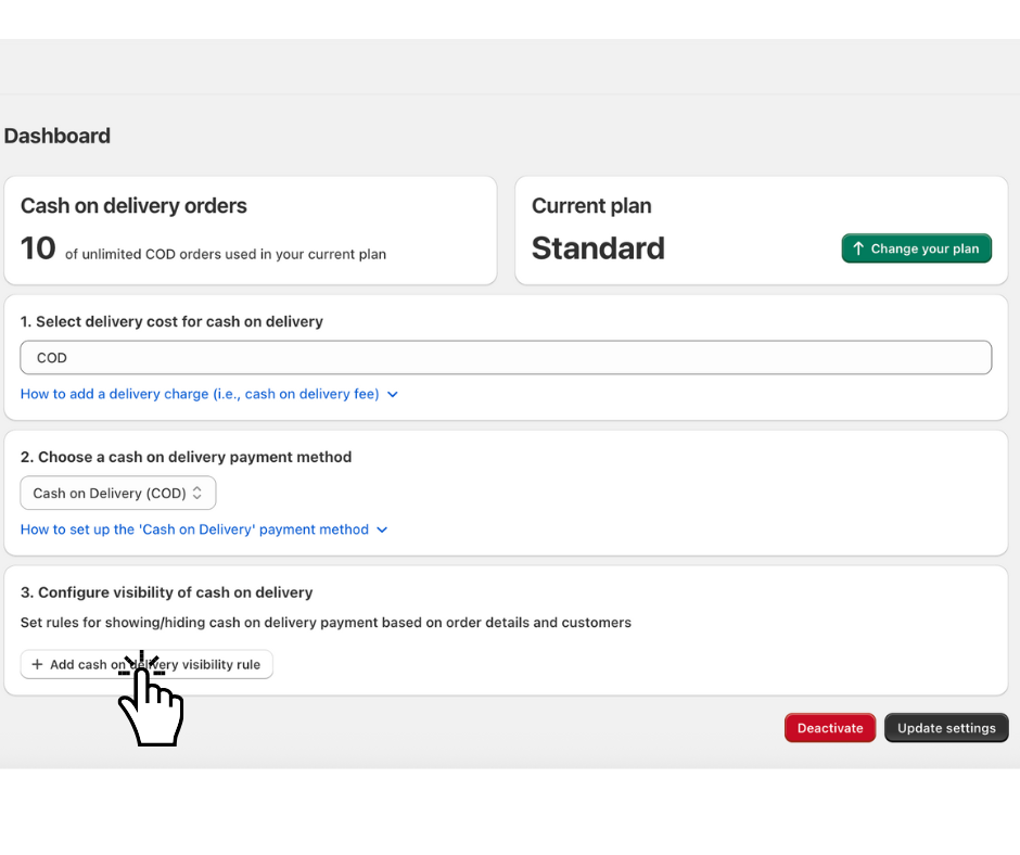 Imagine you want to disable the COD delivery option for heavy shipments to avoid high courier fees.